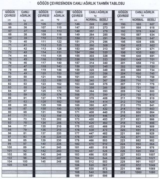 İşletmemizde kantar varsa problem yok. Eğer yoksa o zaman göğüs çevresini ölçerek hayvanların ağırlıklarını tahmin yöntemini kullanabiliriz. Bu yöntem bize az çok hayvanların besi durumları hakkında fikir verecektir.